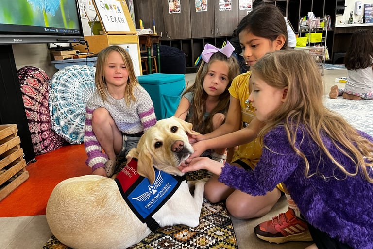 "As a staff, Mrs. Anita Cisneros and myself found the addition of Freedom Canines Inc into our weekly schedule an invaluable learning experience for our students and ourselves. We were able to use examples and the acronyms the students practiced with Freedom Canines, as ways to help them approach peer, parent, or teacher interactions. The growth in their communication was impressive.