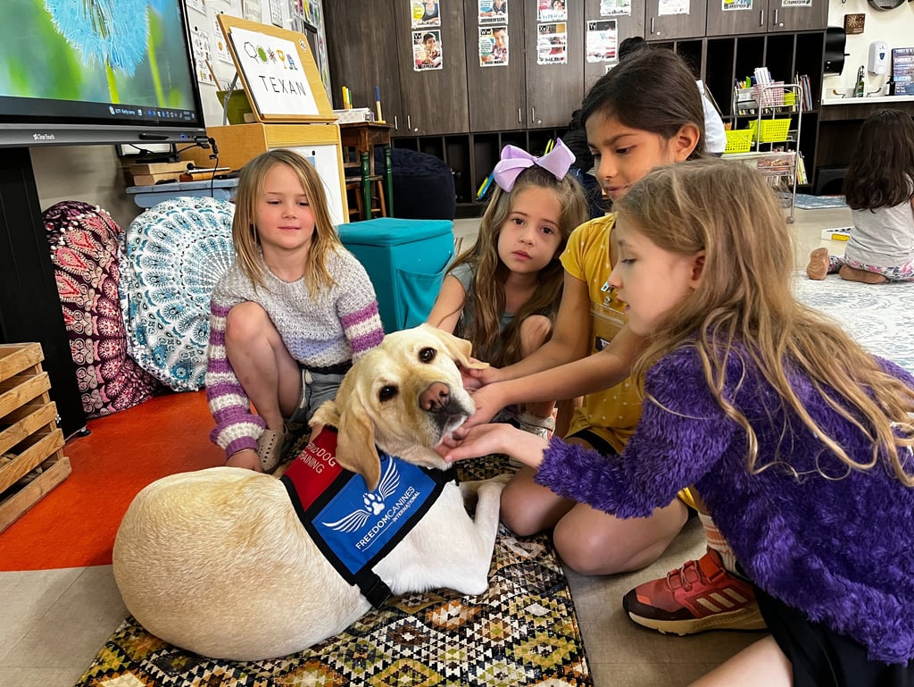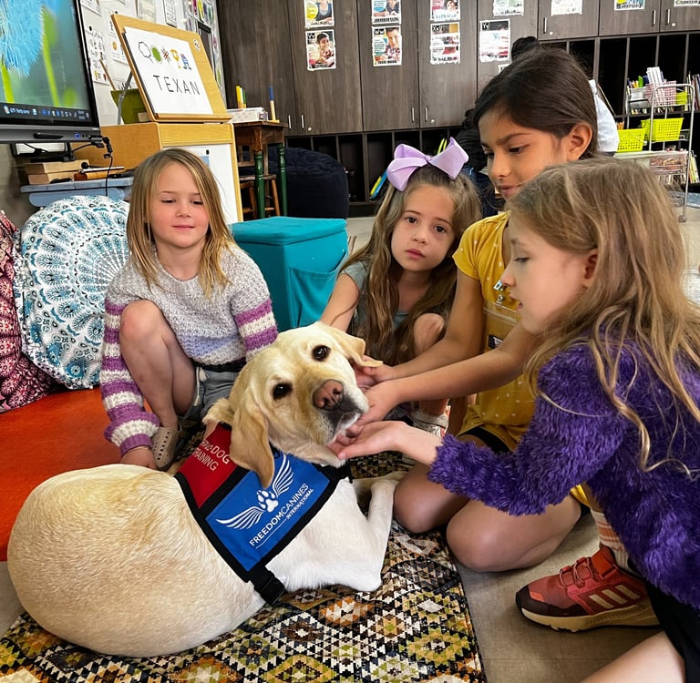 "As a staff, Mrs. Anita Cisneros and myself found the addition of Freedom Canines Inc into our weekly schedule an invaluable learning experience for our students and ourselves. We were able to use examples and the acronyms the students practiced with Freedom Canines, as ways to help them approach peer, parent, or teacher interactions. The growth in their communication was impressive.